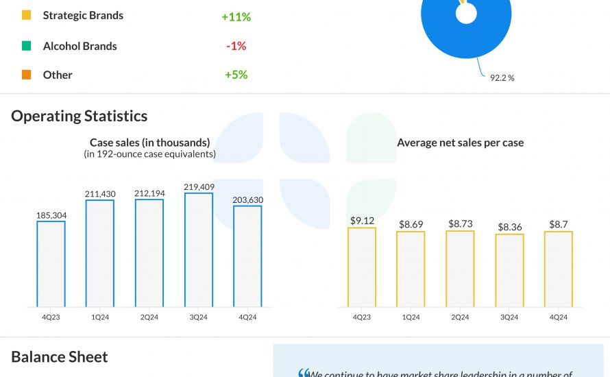 Monster Beverage Corporation (NASDAQ: MNST) reported its earnings results for the fourth quarter of 2024. Net sales increased 4.7% year-over-year to $1.81 billion. Net sales on a foreign currency adjusted basis increased 7.8%. Net income decreased 26.2% to $270.7 million