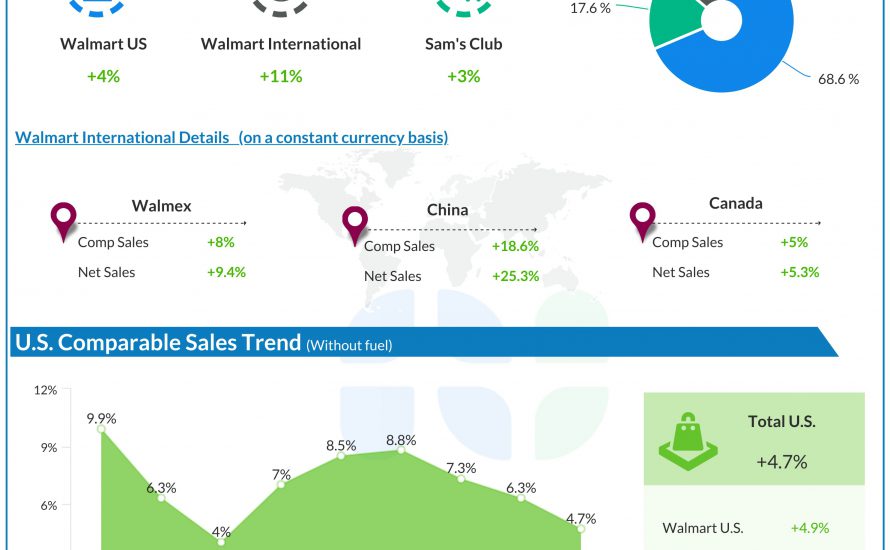 Walmart Inc. (NYSE: WMT) reported third quarter 2024 earnings results today. Consolidated revenue increased 5.2% year-over-year to $160.8 billion. Revenue grew 4.3% in constant currency. Comparable sales grew 4.7%. Consolidated net income attributable to Walmart was $453 million, or $0.17