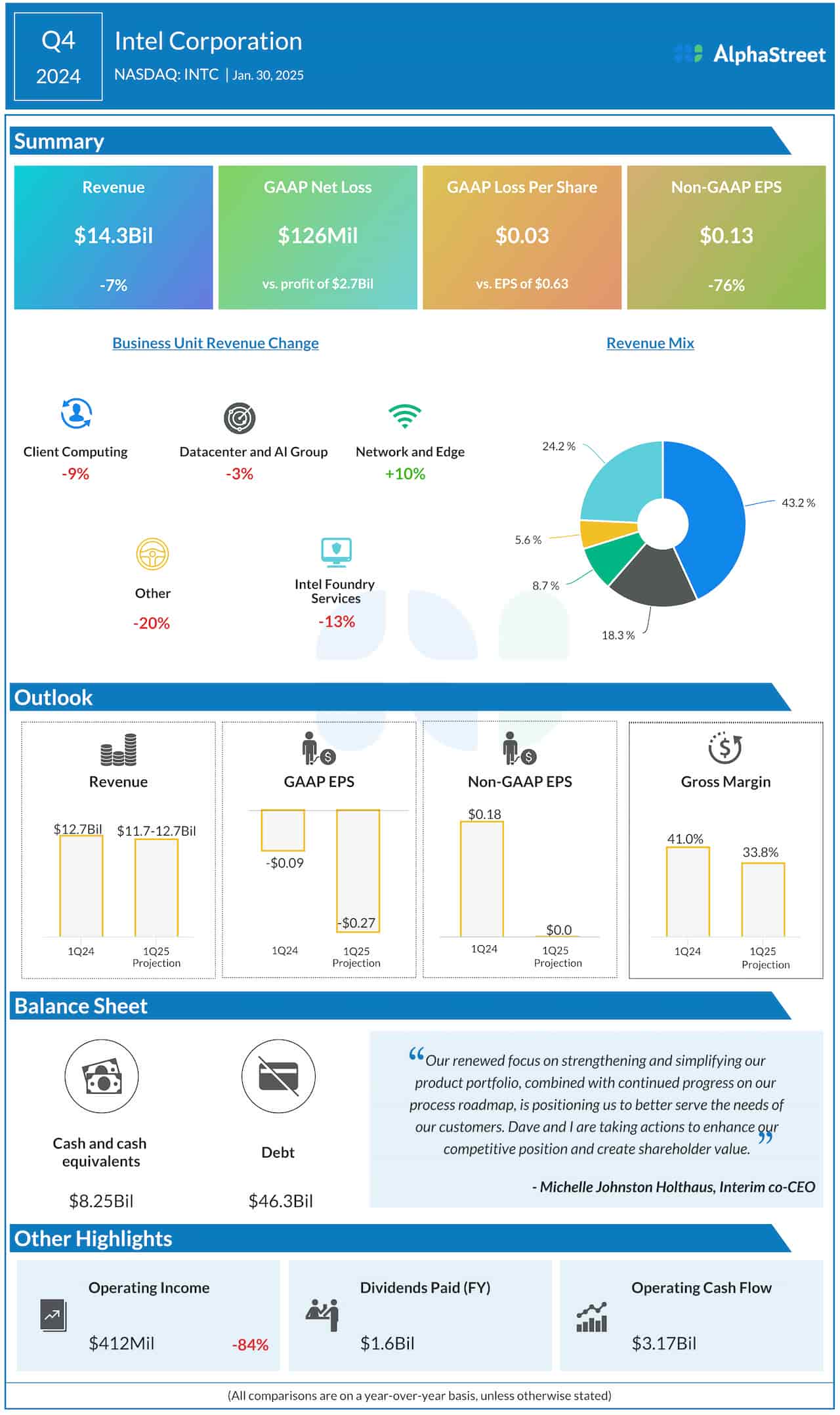 Semiconductor giant Intel Corporation (NASDAQ: INTC) on Thursday reported financial results for the fourth quarter of 2024.