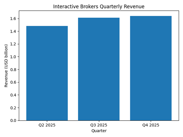 For context across recent quarters, Interactive Brokers’ earlier quarterly revenues were approximately $1.48 billion in Q2 2025 and $1.61 billion in Q3 2025.