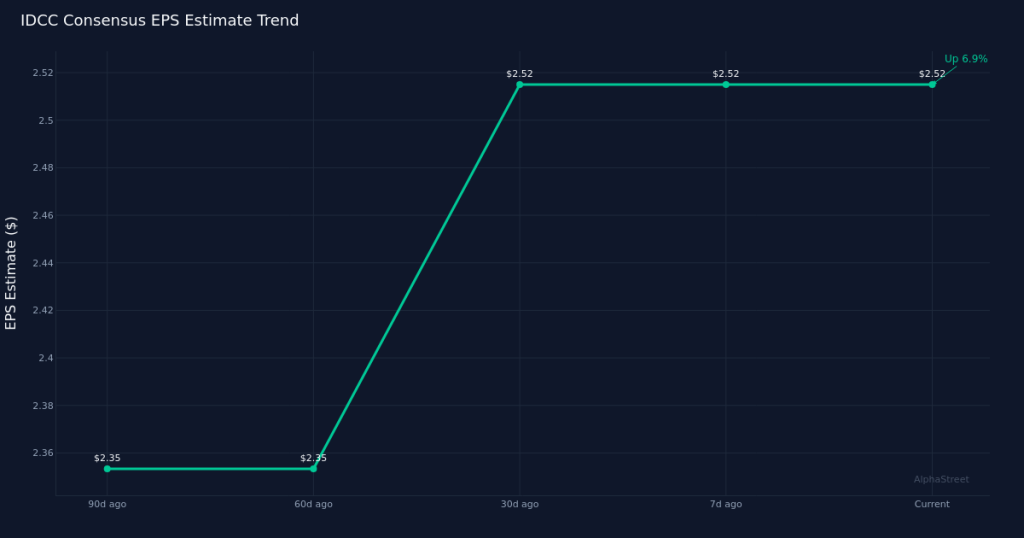 Wall Street is bracing for a challenging comparison as InterDigital (IDCC) prepares to report first-quarter results on April 30th. The consensus among 4 analysts calls for earnings per share of $2.52 on revenue of $196.9M. The EPS estimate carries a tight range from $2.39 to $2.58, while revenue estimates span $196.1M to $197.8M, reflecting relatively modest disagreement about the company’s near-term trajectory.