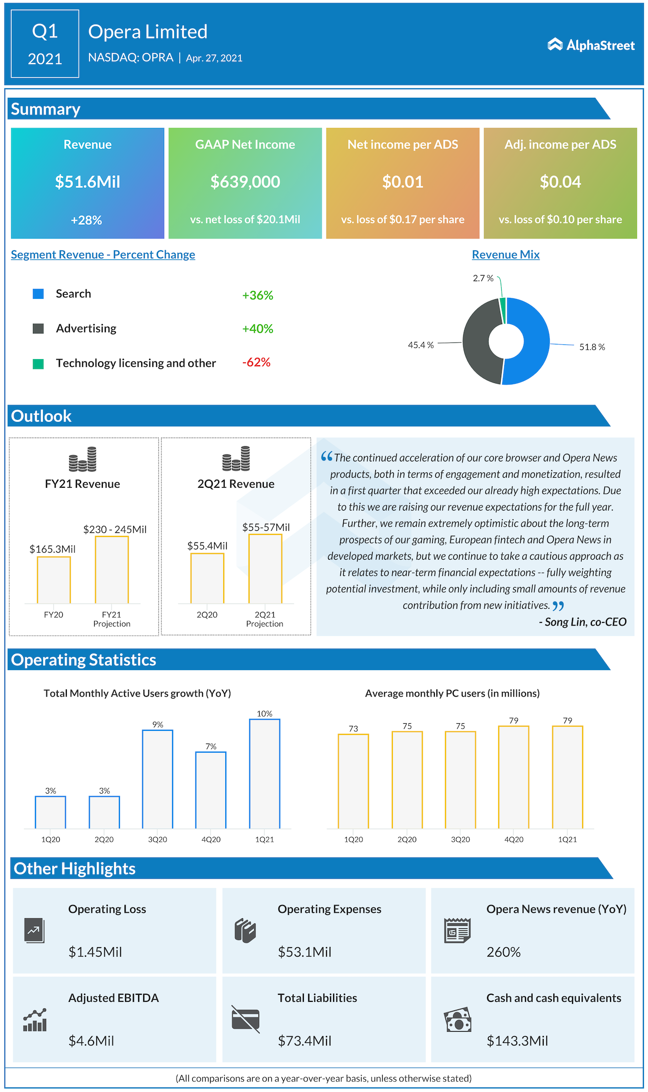 Opera Ltd. (OPRA) Q1 2021 Earnings Call Transcript