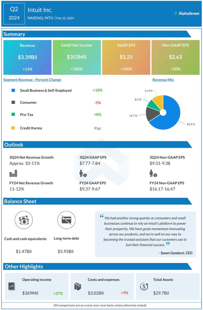 At $3.39 billion, second-quarter revenues were up 11% from the year-ago period, and in line with analysts’ estimates. The top line benefited from strong growth in the Small Business and Self-employed segment.