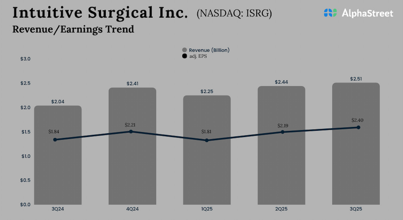 Medical device company Intuitive Surgical, Inc. (NASDAQ: ISRG) on Wednesday reported stronger-than-expected revenue and earnings for the third quarter of fiscal 2025.