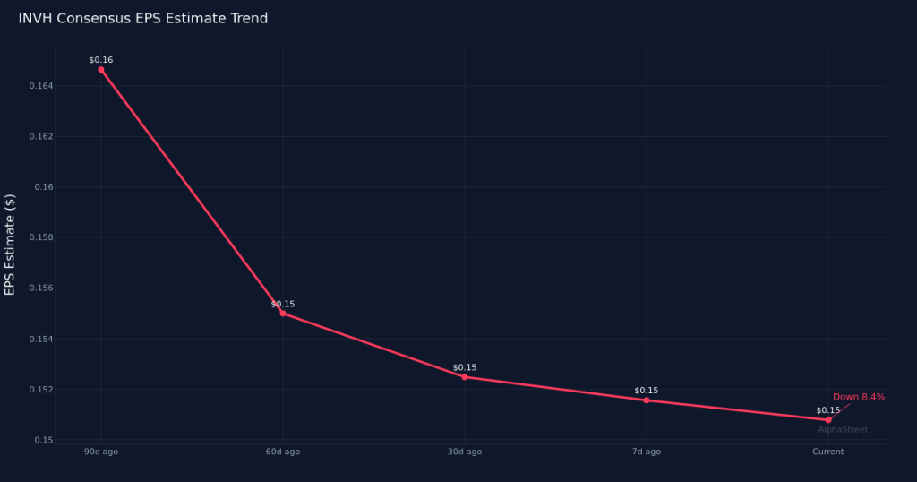 Analyst sentiment has cooled in recent months. While EPS estimates held steady over the past 30 days at $0.15, the 90-day view reveals a down 6.3% drift from $0.16. This gradual reduction in earnings expectations suggests analysts have tempered their near-term outlook for the single-family rental REIT, potentially reflecting concerns about occupancy trends, operating expense pressures, or rent growth dynamics in the company’s markets.