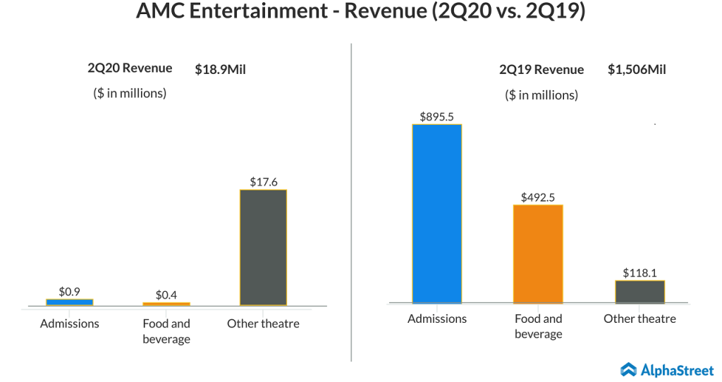 AMC’s second quarter results were severely impacted by COVID-19 crisis as the company suspended all of its theatre operations in the US for the entire quarter and all of its international theatres for two-thirds of the quarter. International attendance was only 100,000 tickets sold compared to around 25 million in the second quarter of last year. The company swung to a loss of $561 million from a profit of $49 million in the prior-year quarter. Revenue plunged to $19 million from $1.51 billion in the year-ago quarter.