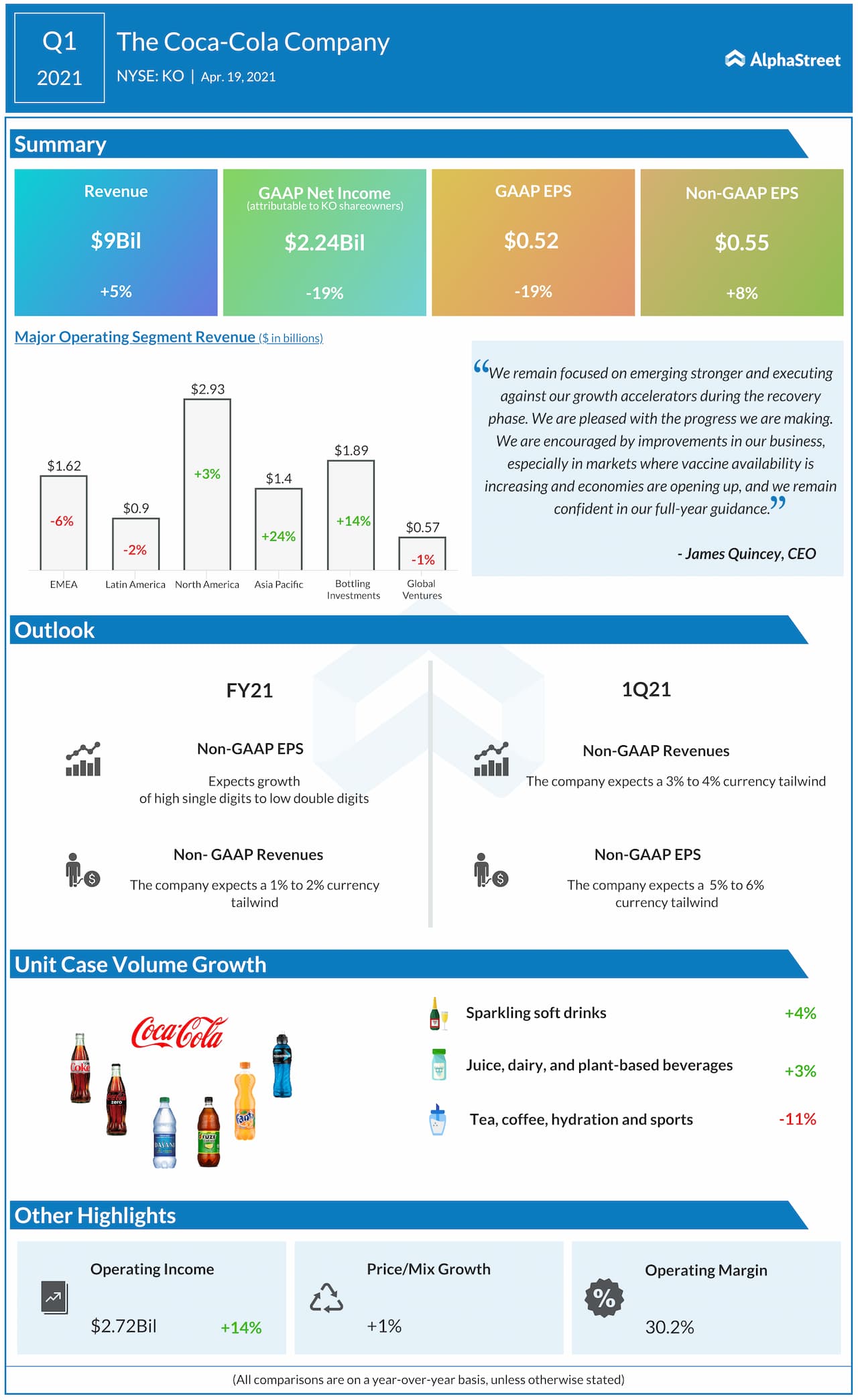 In the first quarter of 2021, despite the pressures associated with the global lockdowns, Соca-Cola’s growth rate showed improvement. Sales volume rose by 5% compared to the 3% drop in the fourth quarter of 2020. The management did acknowledge losing ground to PepsiCo, as Coca-Cola’s dominant niches like restaurants and sporting events suffered.
