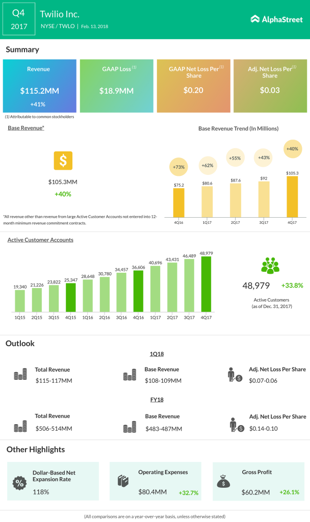 With companies investing heavily in the latest tech trends, Jeff Lawson, co-founder of Twilio, has also joined race by investing in machine learning and artificial intelligence. Investing in these emerging trends can help Twilio grow its business and fetch more customers, making this as another intelligent move to attract investors’ attention. As of December 31, 2017, the number of active customers jumped to 48,979 compared to 36,606 in the prior year.