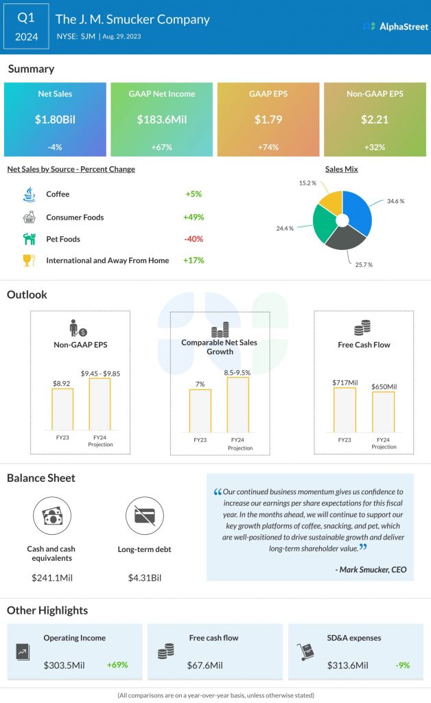 In the Coffee segment, net sales grew 5%, helped by strong performances from its leading brands such as Café Bustelo, Folgers and Dunkin. Café Bustelo and Folgers continued to see volume share growth in the quarter. Dunkin is seeing price gaps to competitors narrow and this is expected to drive volume growth for the brand. As stated on its quarterly conference call, SJM expects momentum in coffee to continue and sees resilience in the coffee category as at-home coffee consumption remains stable.