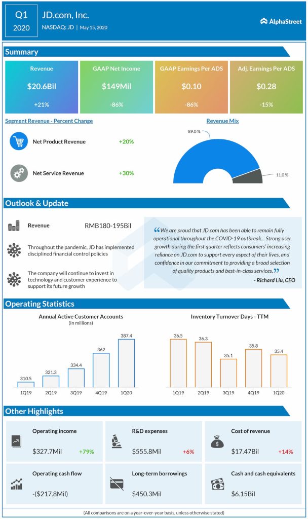 JD.com, Inc. (NASDAQ: JD) reported its financial results for the quarter ended March 31, 2020, on Friday before the market opens. The results exceeded analysts’ expectations.