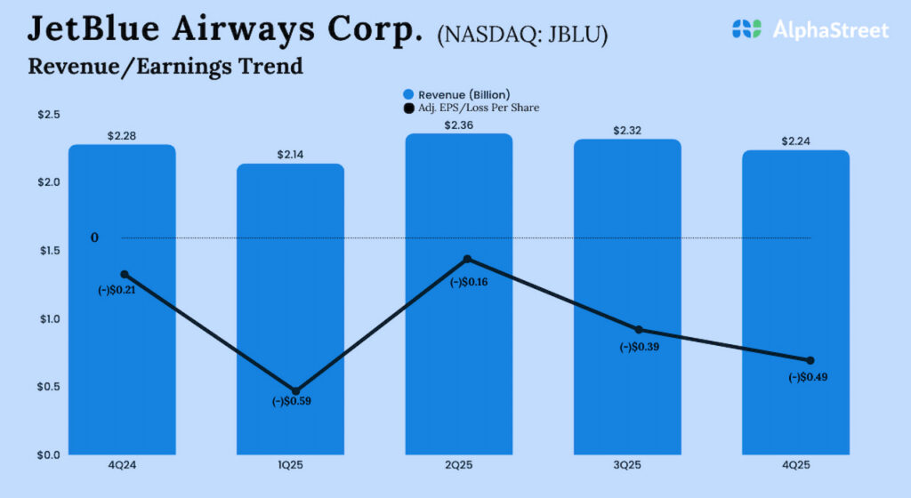 JetBlue’s chief executive officer, Joanna Geraghty, said, “In the first full year of JetForward, we made measurable progress improving reliability, strengthening customer satisfaction, and advancing our strategic priorities, even amid a challenging operating environment. While macroeconomic uncertainty impeded our return to profitability in 2025, we have proof points JetForward is working and positioning us for improved financial performance in 2026.”