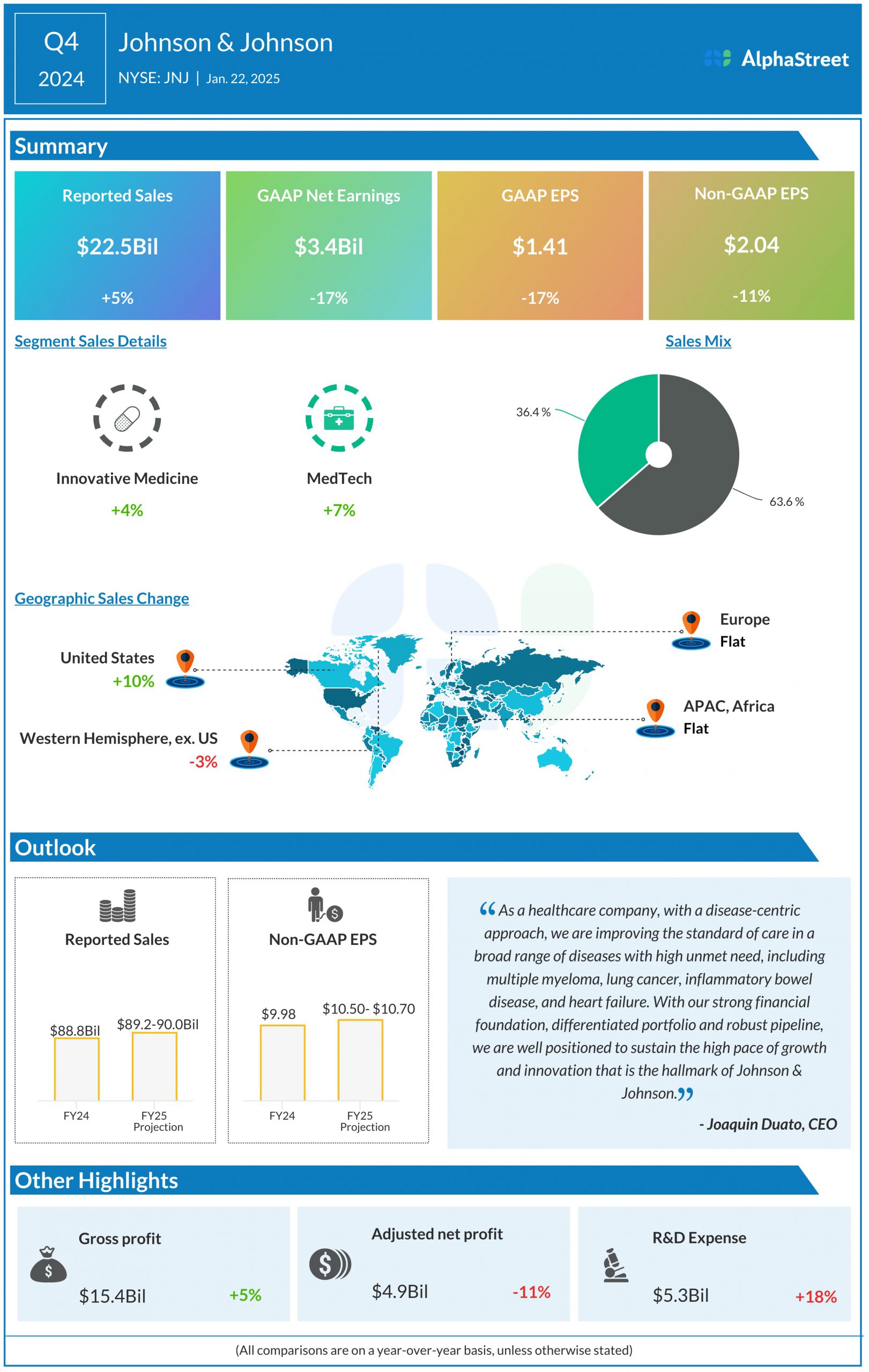 Johnson & Johnson (NYSE: JNJ) reported its fourth quarter 2024 earnings results today.