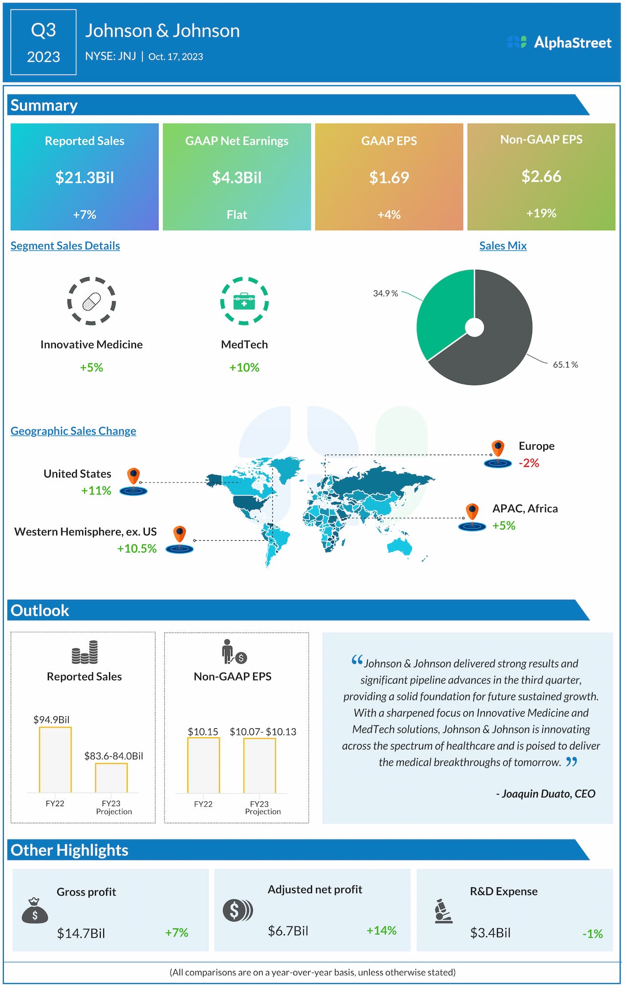 “This quarter’s call marks a new era for Johnson & Johnson with a sharpened focus on Innovative Medicine and MedTech. What has remained consistent is our credo and our commitment to patients. We are privileged to build upon our 137 years of tackling the world’s most complex healthcare challenges and helping — with serious unmet health needs around the world. As we look forward, we are well-positioned to grow our business and innovate across the spectrum of healthcare. We are excited about what’s ahead and what we can achieve in the future.”