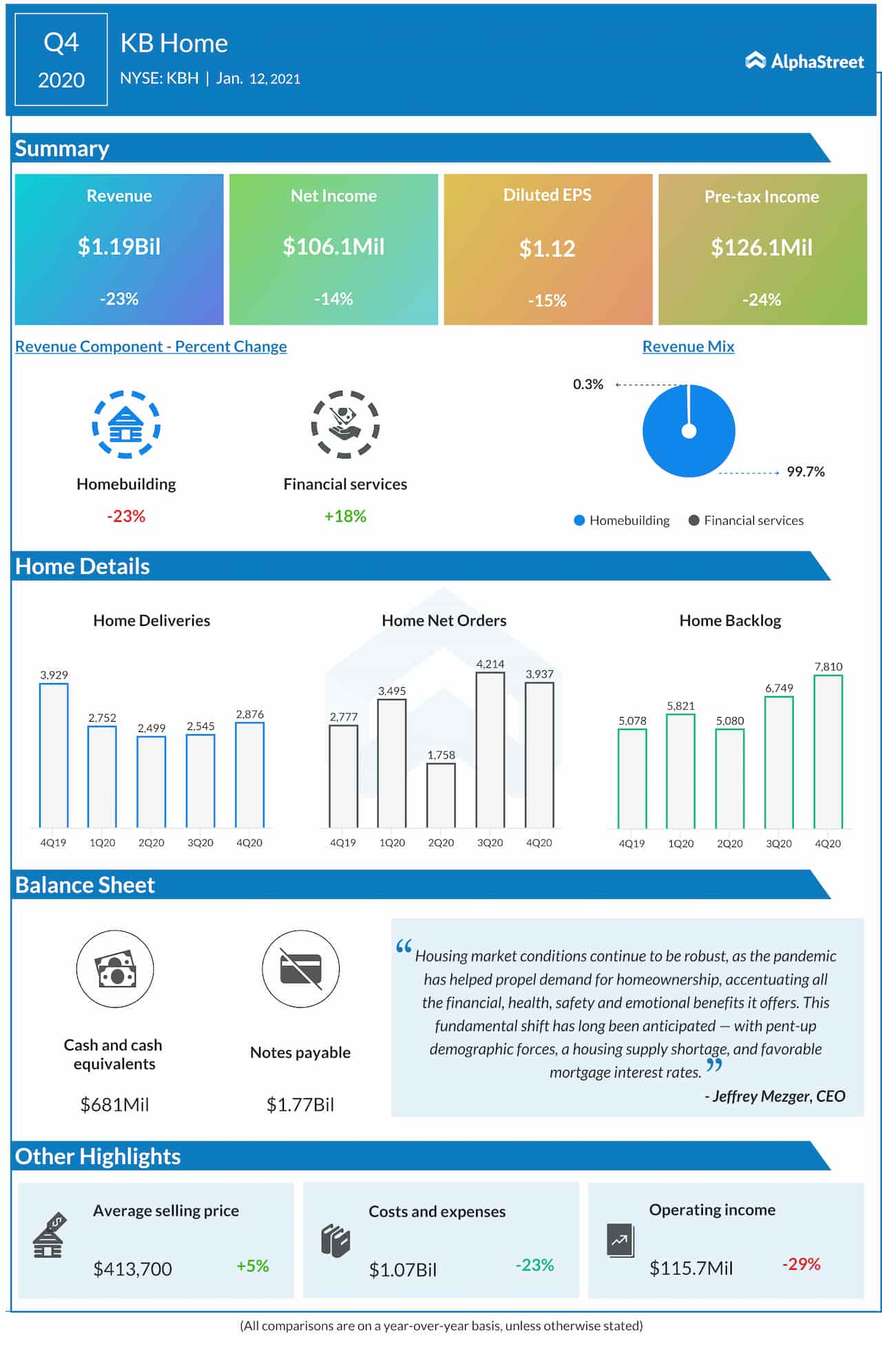 Meanwhile, the COVID-related disruption and curbs imposed by the government had a negative impact on KB Home’s performance in the fourth quarter. Both sales and earnings declined in double-digits to $1.2 billion and $1.12 per share, respectively. But it was better than the outcome analysts had predicted.