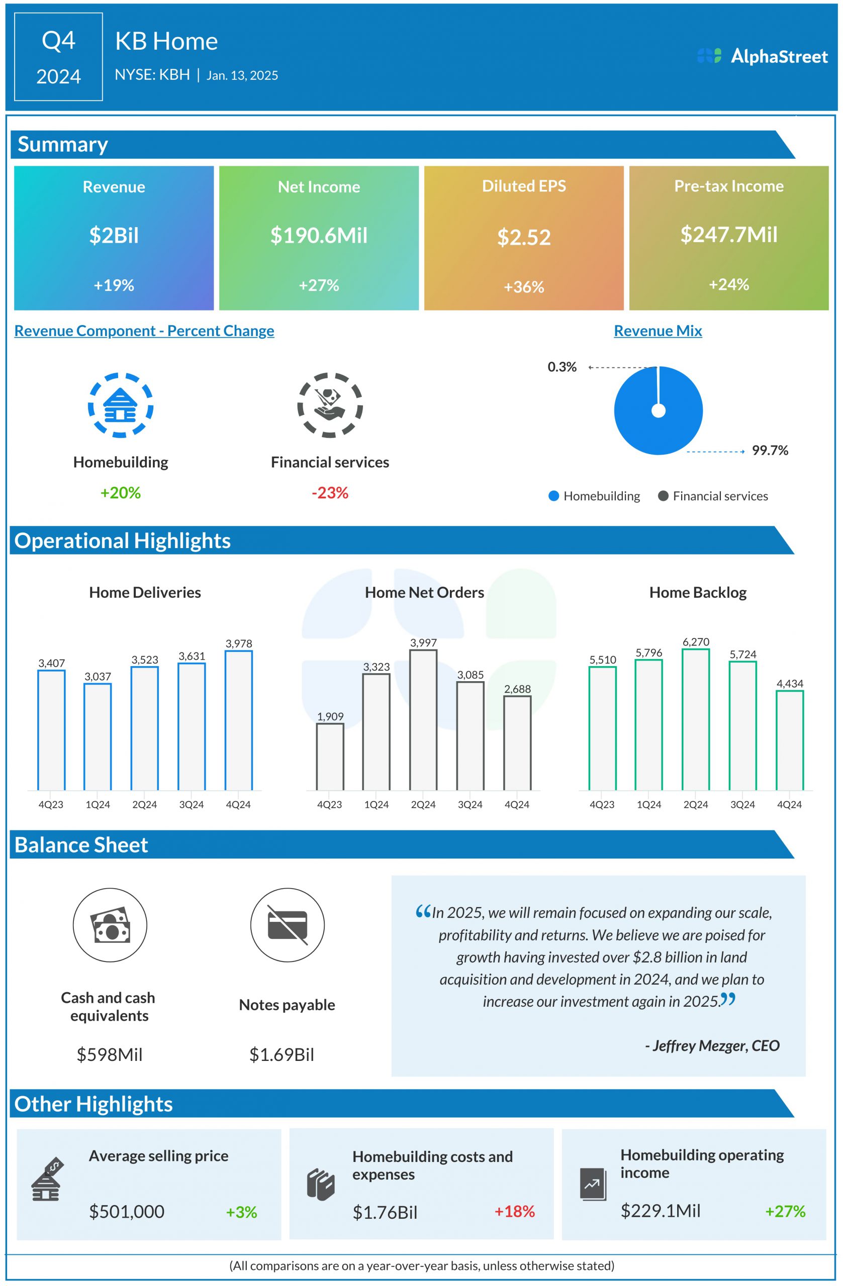 During the fourth quarter, KB Home witnessed strong demand for housing despite the headwinds from interest rates. As mentioned on the quarterly call, growth in employment and wages continue to fuel the housing market, and there is significant desire for homeownership among Millennials and Gen Z buyers who are increasingly forming new households. However, high mortgage rates continue to hinder affordability and pressure demand.
