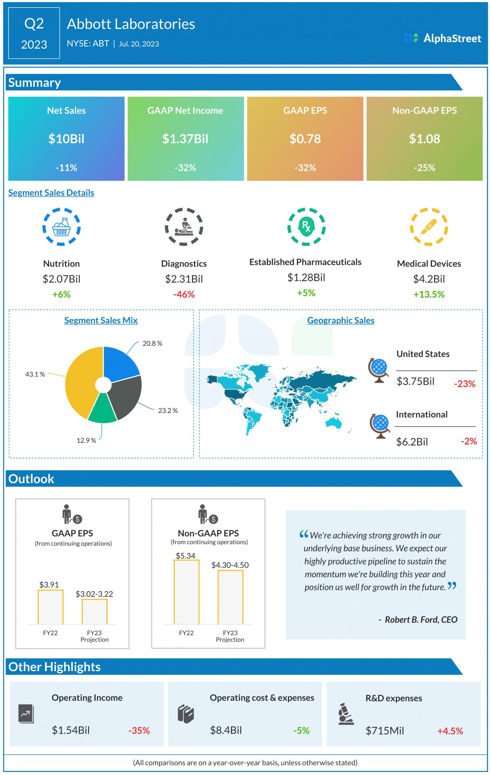 Abbott Laboratories (NYSE: ABT) reported second quarter 2023 earnings results today.