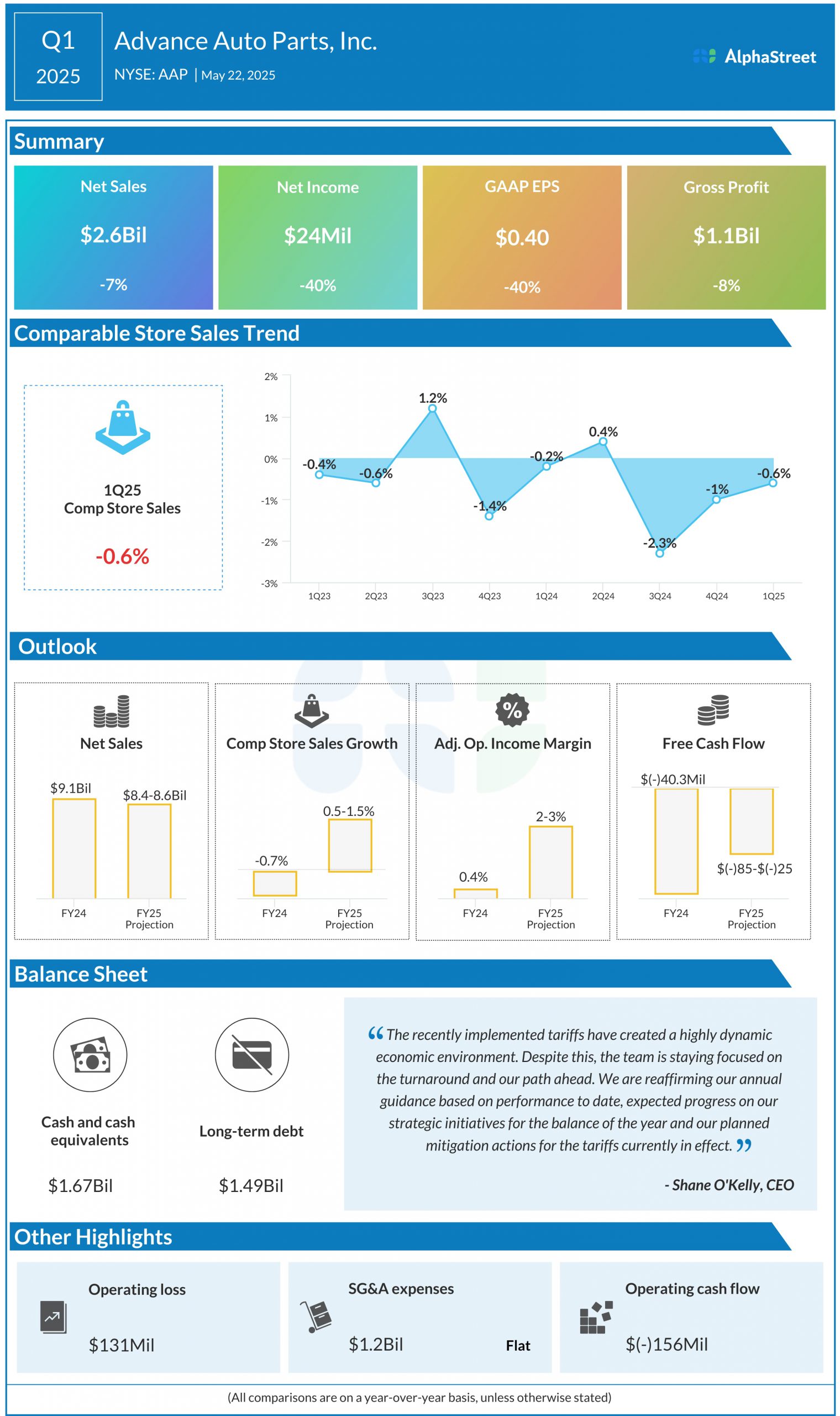 Advance Auto Parts, Inc. (NYSE: AAP) reported its first quarter 2025 earnings results today.