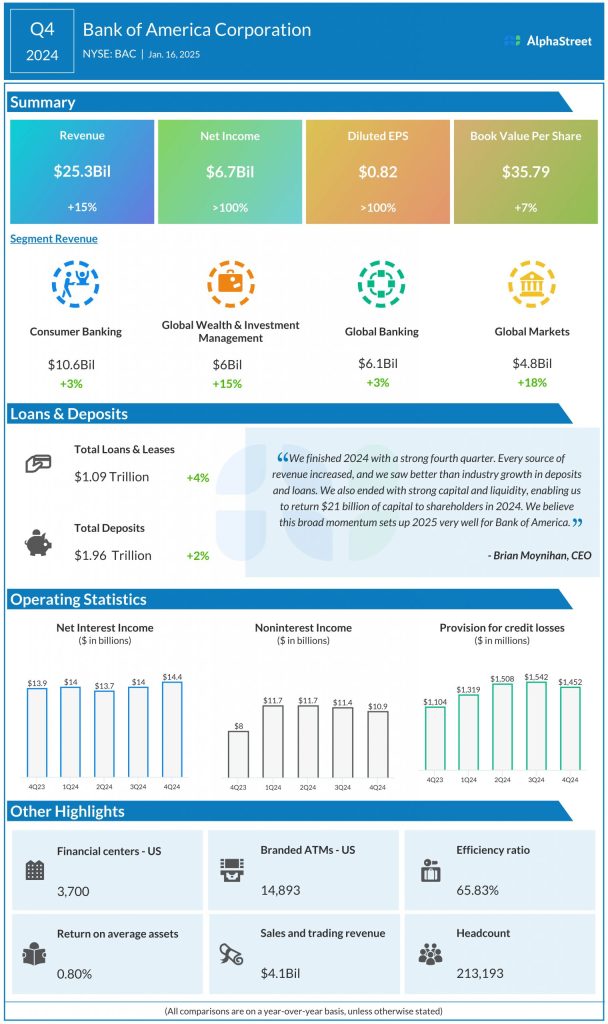 Net interest income (NII) was $14.4 billion, up 3% from last year. Non-interest income was $10.9 billion, up 36% YoY. Non-interest expense of $16.8 billion was down 5% YoY.