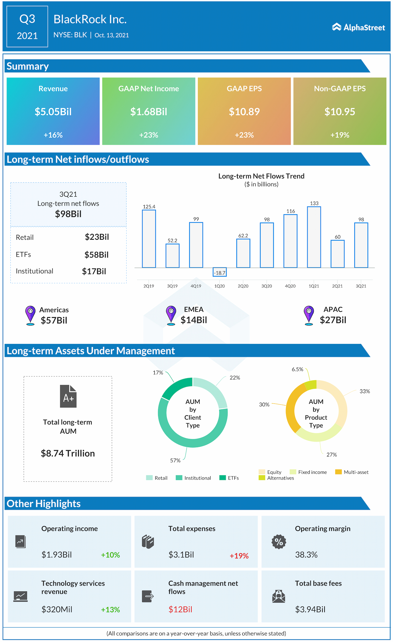BlackRock Inc. (NYSE: BLK) reported third-quarter 2021 earnings results today.