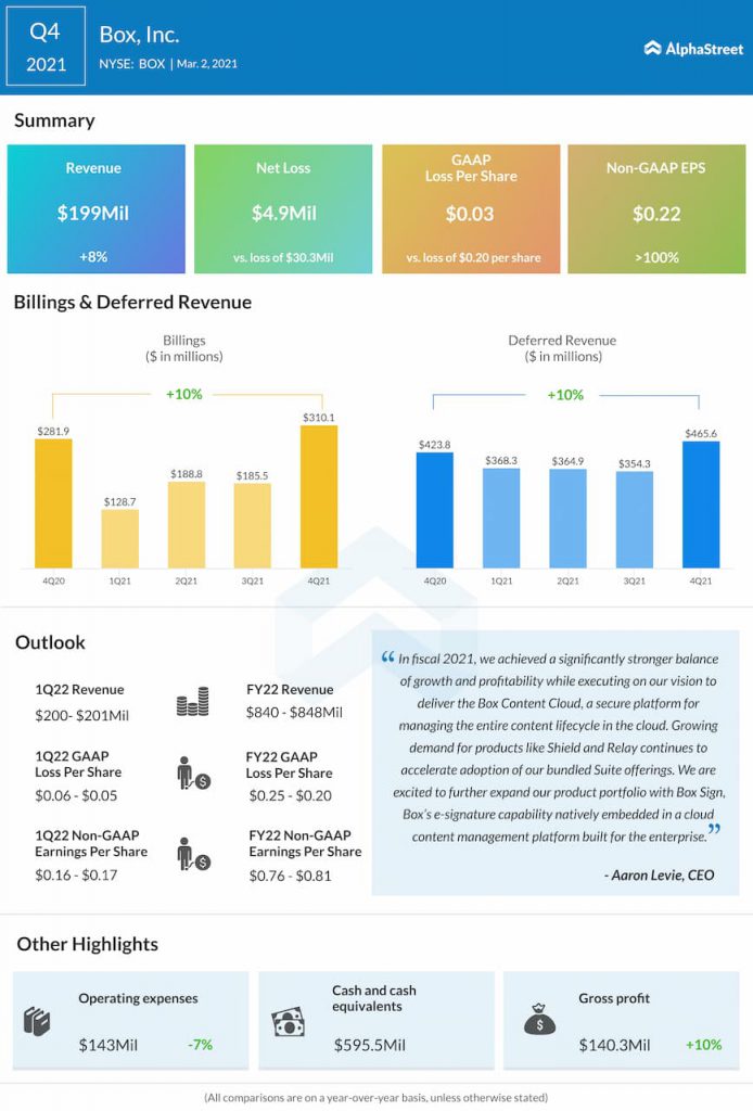 Box Inc. (NYSE: BOX) reported fourth quarter 2021 earnings results today.