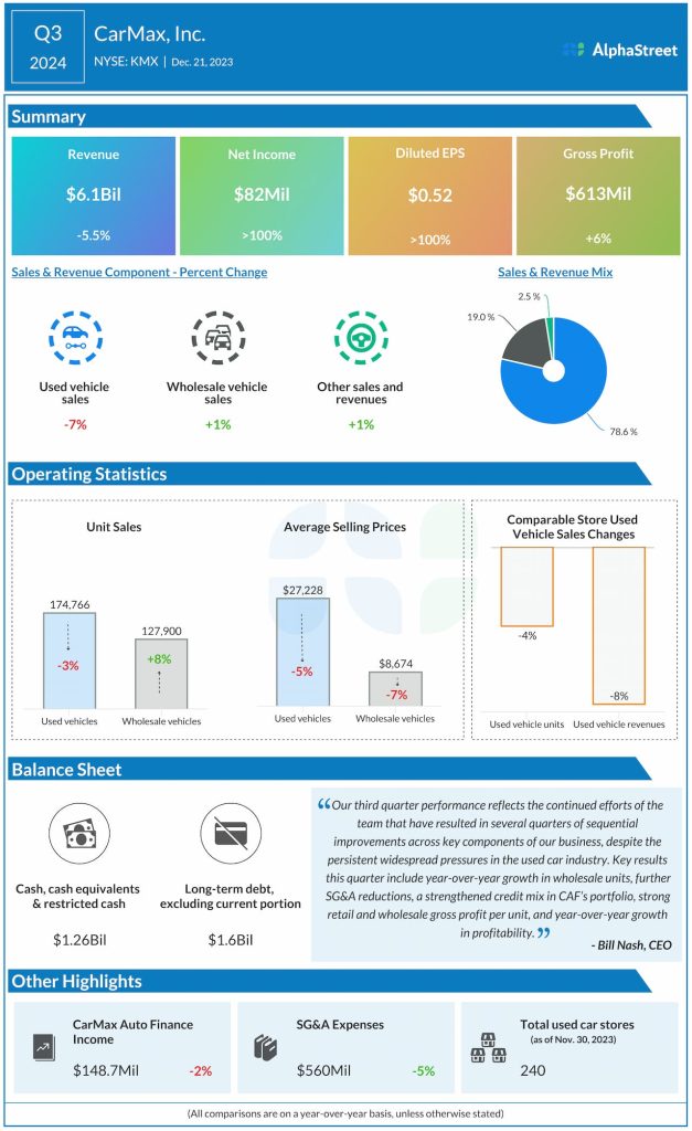 During the third quarter of 2024, KMX resumed its share repurchase program after a pause initiated during the third quarter of 2023. The company repurchased 648,500 shares of common stock for $41.9 million in the quarter.