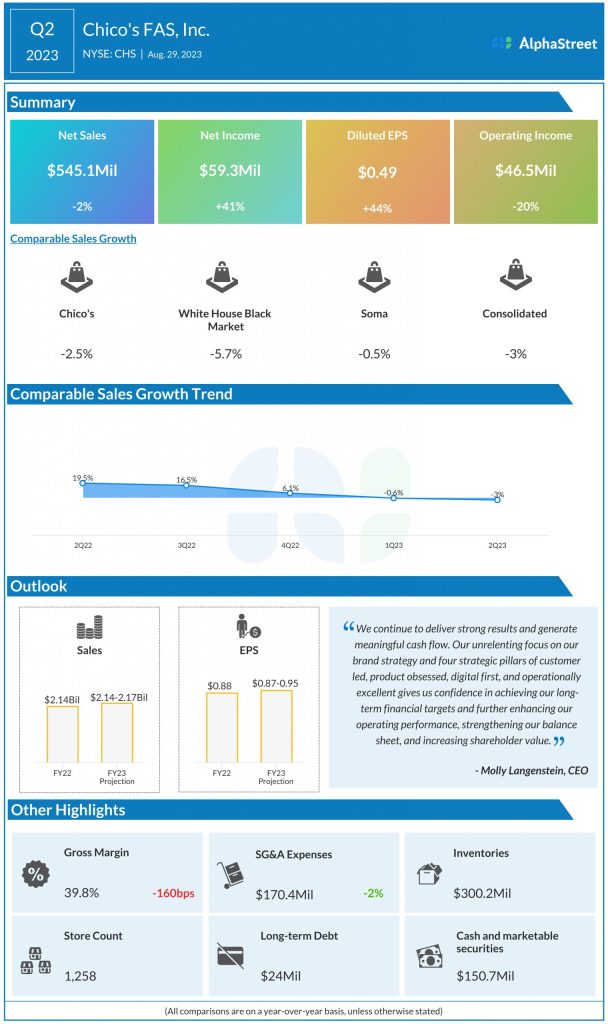 For the third quarter of 2023, the company expects consolidated net sales of $505-525 million and EPS of $0.08-0.12. For the full year of 2023, consolidated net sales are expected to be $2.14-2.17 billion while EPS is estimated to be $0.87-0.95.