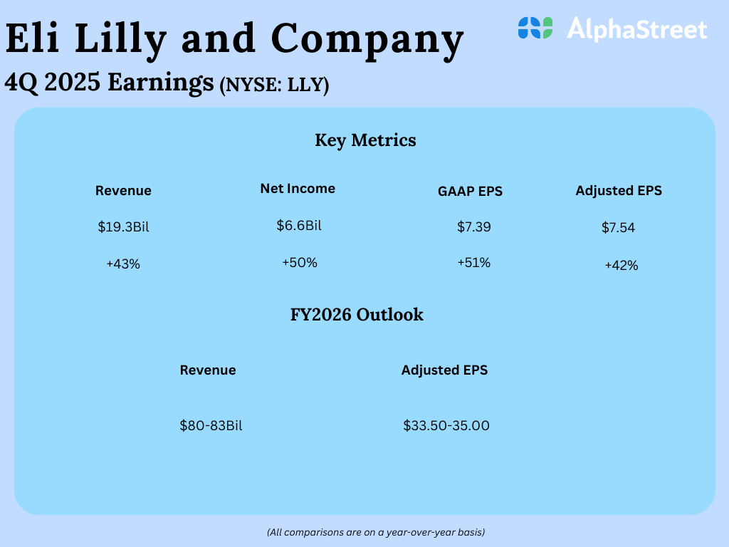 Eli Lilly and Company (NYSE: LLY) reported its fourth quarter 2025 earnings results today.
