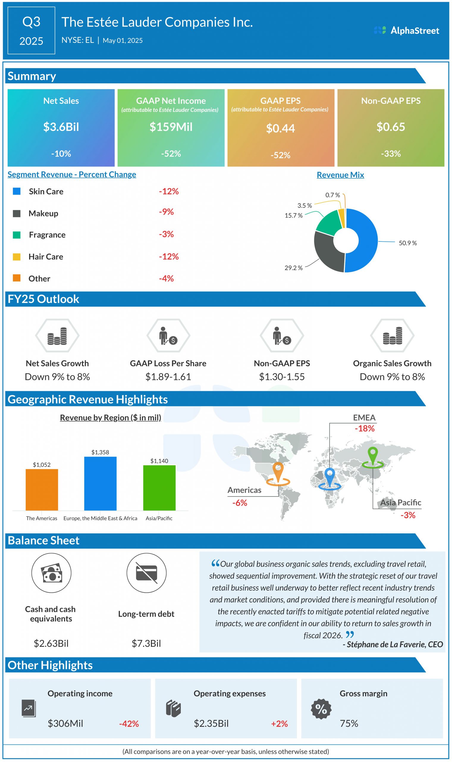 The Estée Lauder Companies Inc. (NYSE: EL) reported its third quarter 2025 earnings results today.