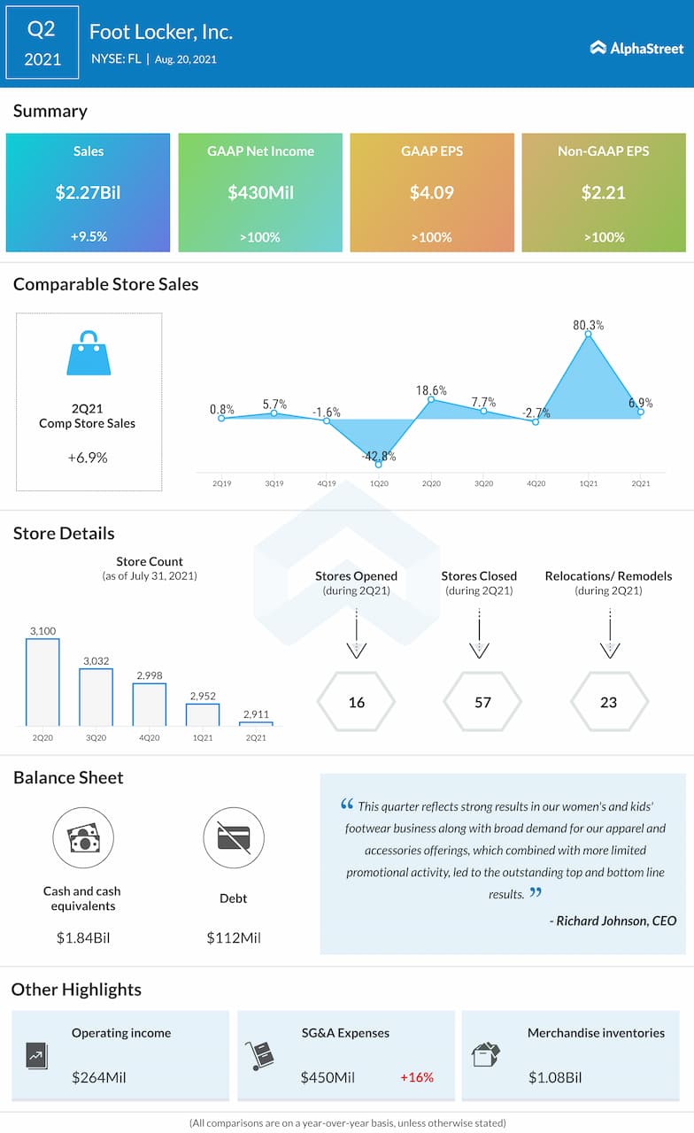 Foot Locker, Inc. (NYSE: FL) reported second quarter 2021 earnings results today.