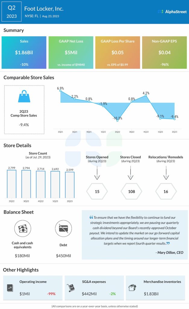 For FY2023, sales are expected to be down 8-9% from the prior year. Comparable sales are expected to decline 9-10%. Adjusted EPS is estimated to range between $1.30-1.50.