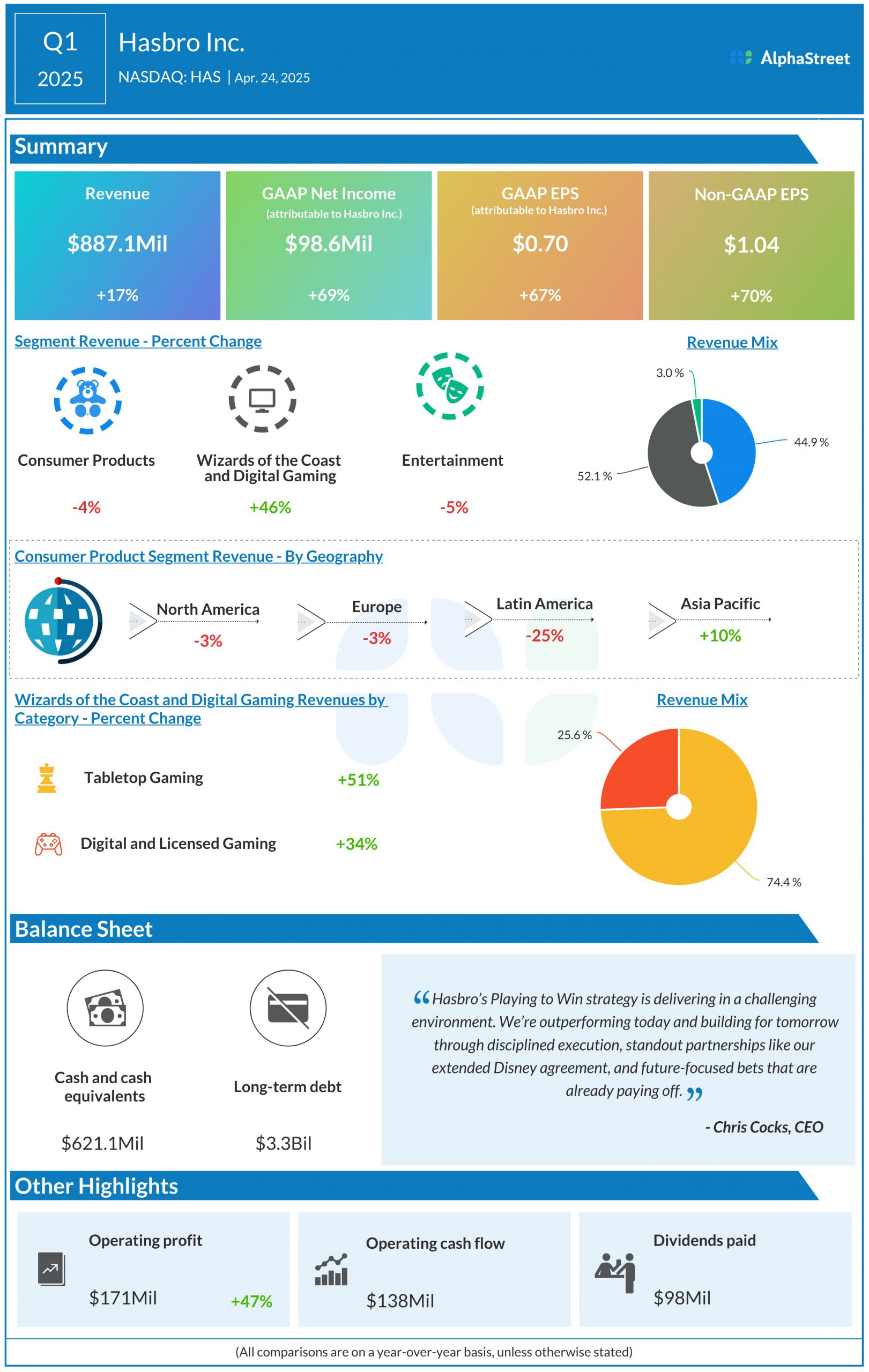Hasbro, Inc. (NASDAQ: HAS) reported its first quarter 2025 earnings results today.