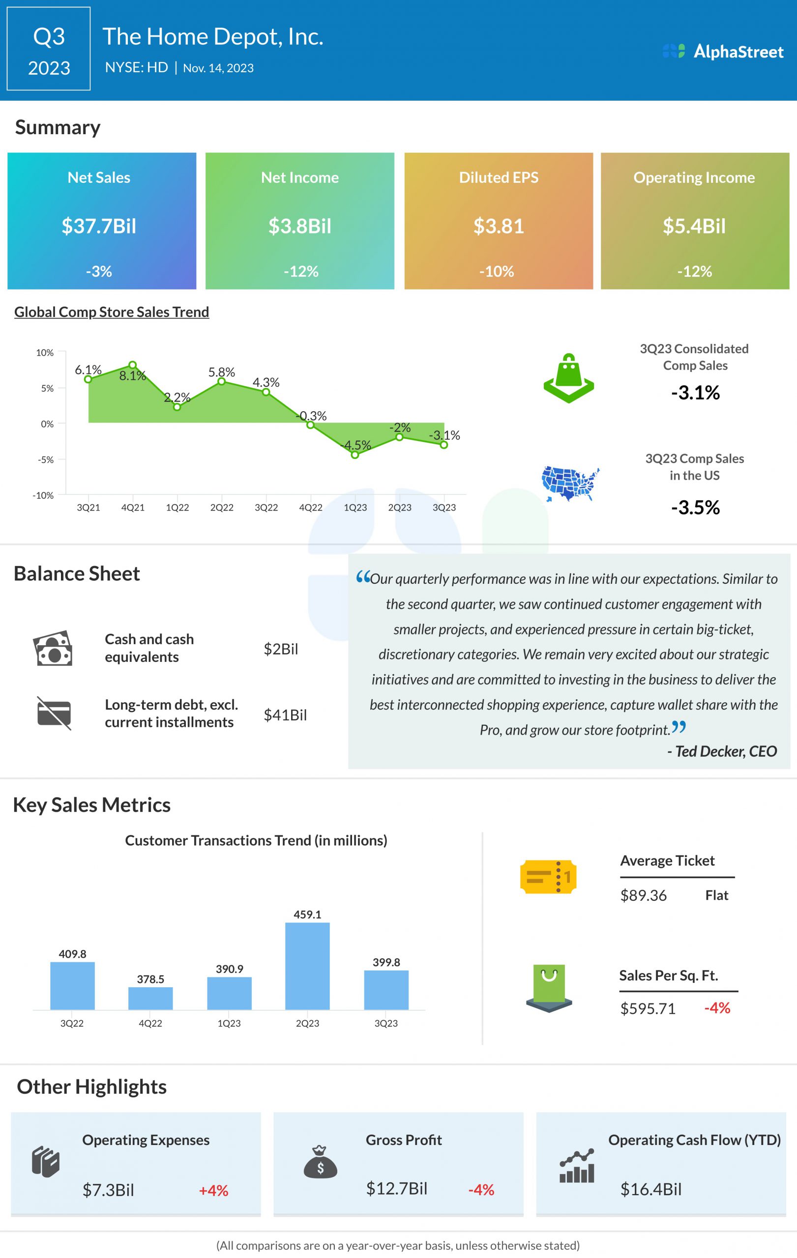 Sales decreased 3% year-over-year to $37.7 billion. Comparable sales fell 3.1%.