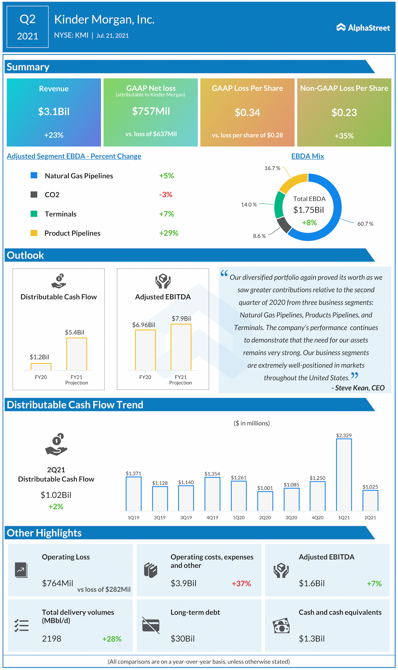 Kinder Morgan, Inc. (NYSE: KMI) reported second-quarter 2021 earnings results today.