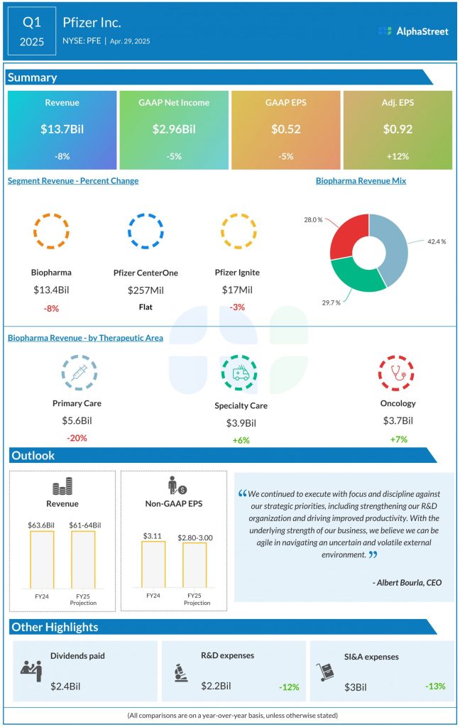 Pfizer Inc. (NYSE: PFE) reported its first quarter 2025 earnings results today.