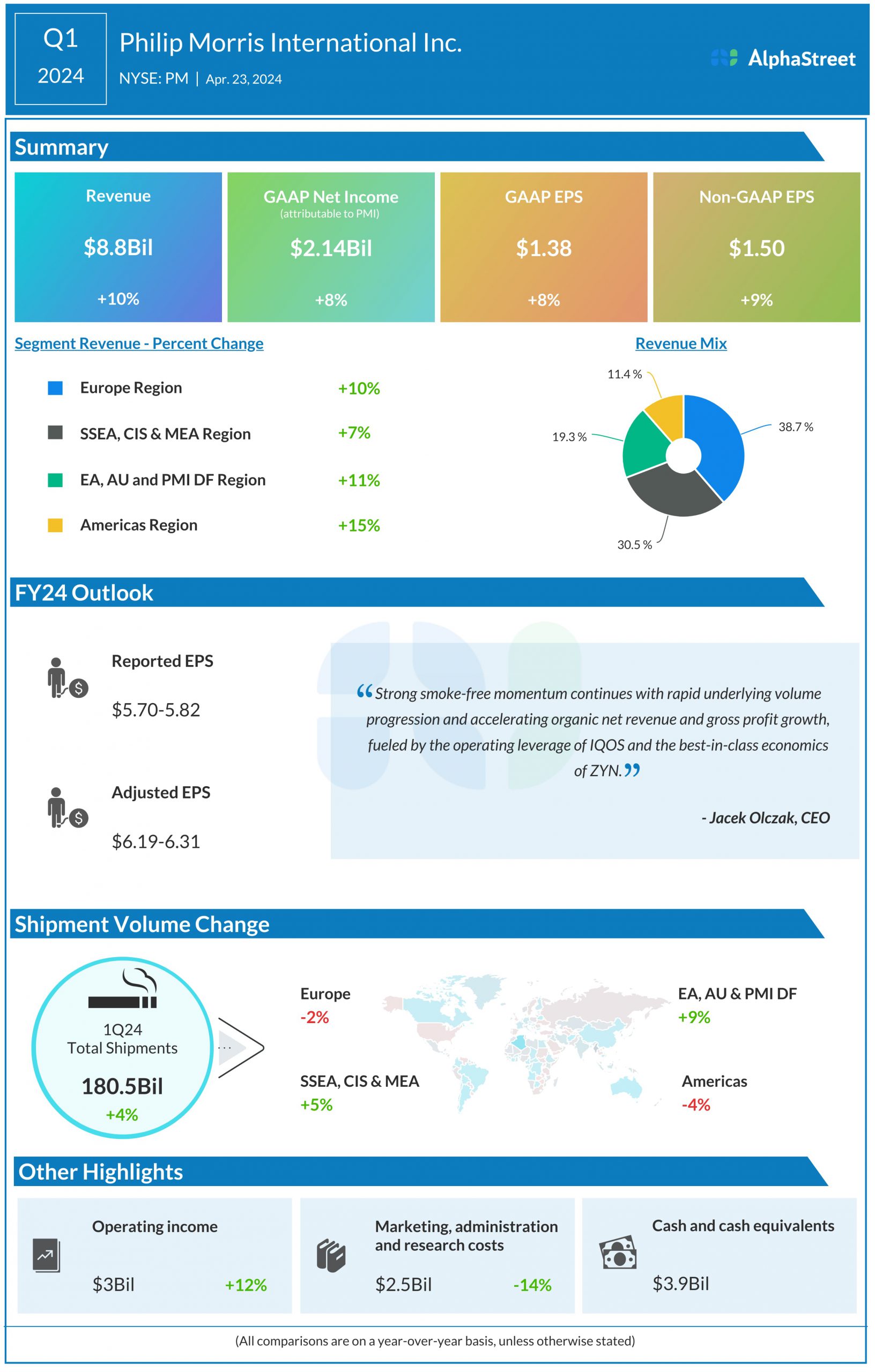 Philip Morris International Inc. (NYSE: PM) reported first quarter 2024 earnings results today.