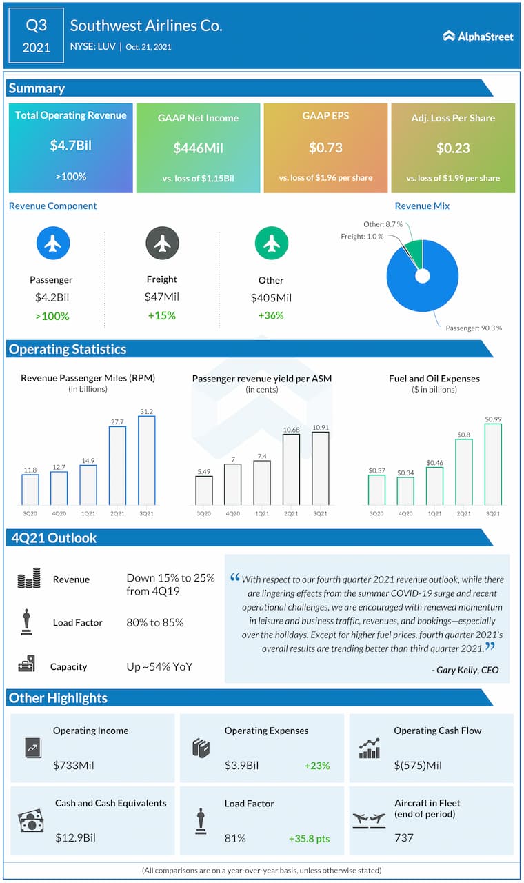 Southwest Airlines Co. (NYSE: LUV) reported third quarter 2021 earnings results today.