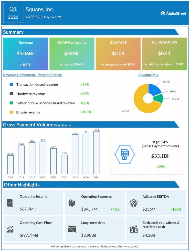 Square Inc. (NYSE: SQ) reported its first quarter 2021 earnings results today.