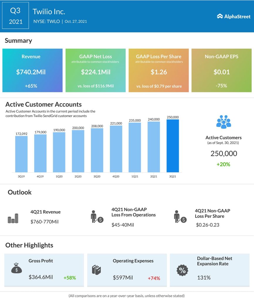 “We delivered another quarter of strong growth at scale in the third quarter as companies continue to turn to Twilio in this digital-first world. We are extremely excited about the next generation of our customer engagement platform, and our newest pillar, Twilio Engage, which will allow companies of all sizes and in any industry to build and optimize hyper-personalized marketing campaigns on every channel for customer acquisition, conversion and retention.”