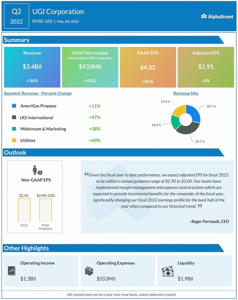 UGI Corporation (NYSE: UGI) reported total revenue of $3.4 billion for the second quarter of 2022.