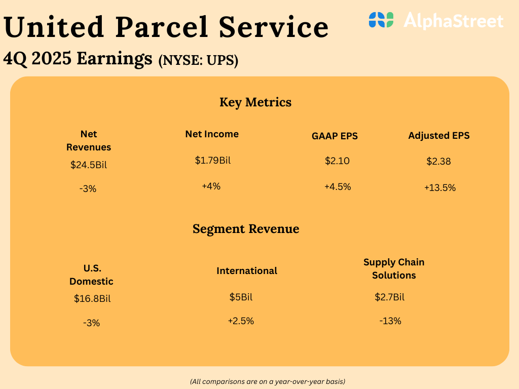 UPS (NYSE: UPS) reported its fourth quarter 2025 earnings results today.