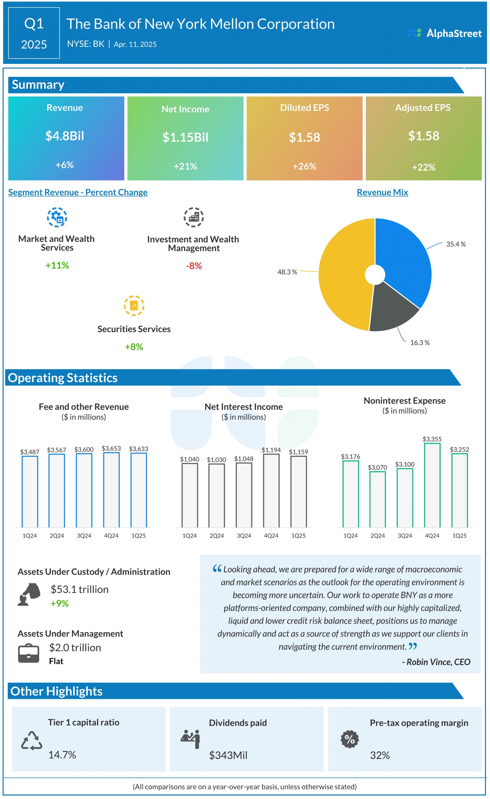 The Bank of New York Mellon Corporation (NYSE: BK) reported its first quarter 2025 earnings results today.