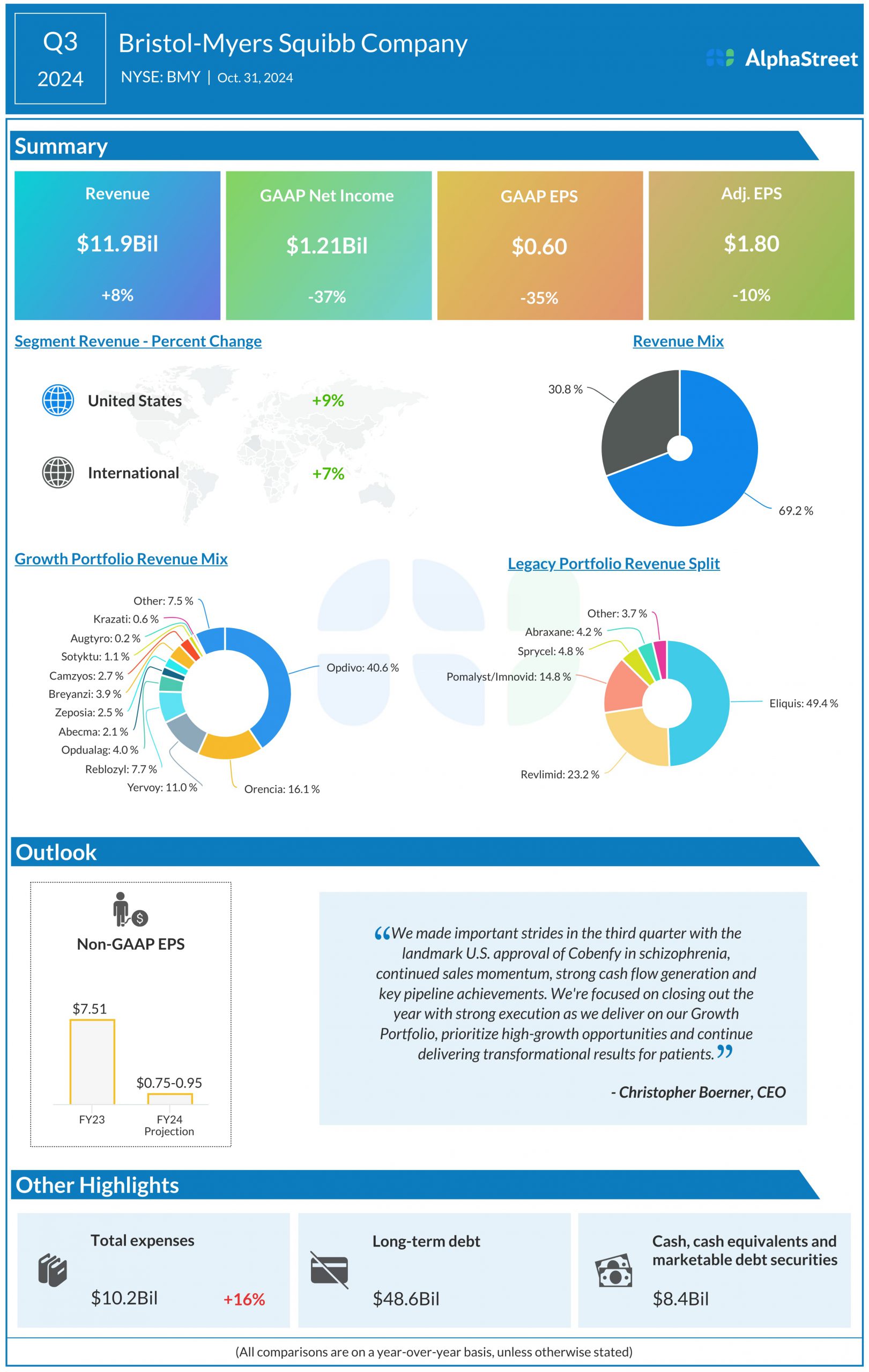 Bristol Myers Squibb (NYSE: BMY) reported its third quarter 2024 earnings results today.