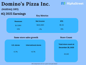 Domino’s Pizza, Inc. (NASDAQ: DPZ) reported its fourth quarter 2025 earnings results today.