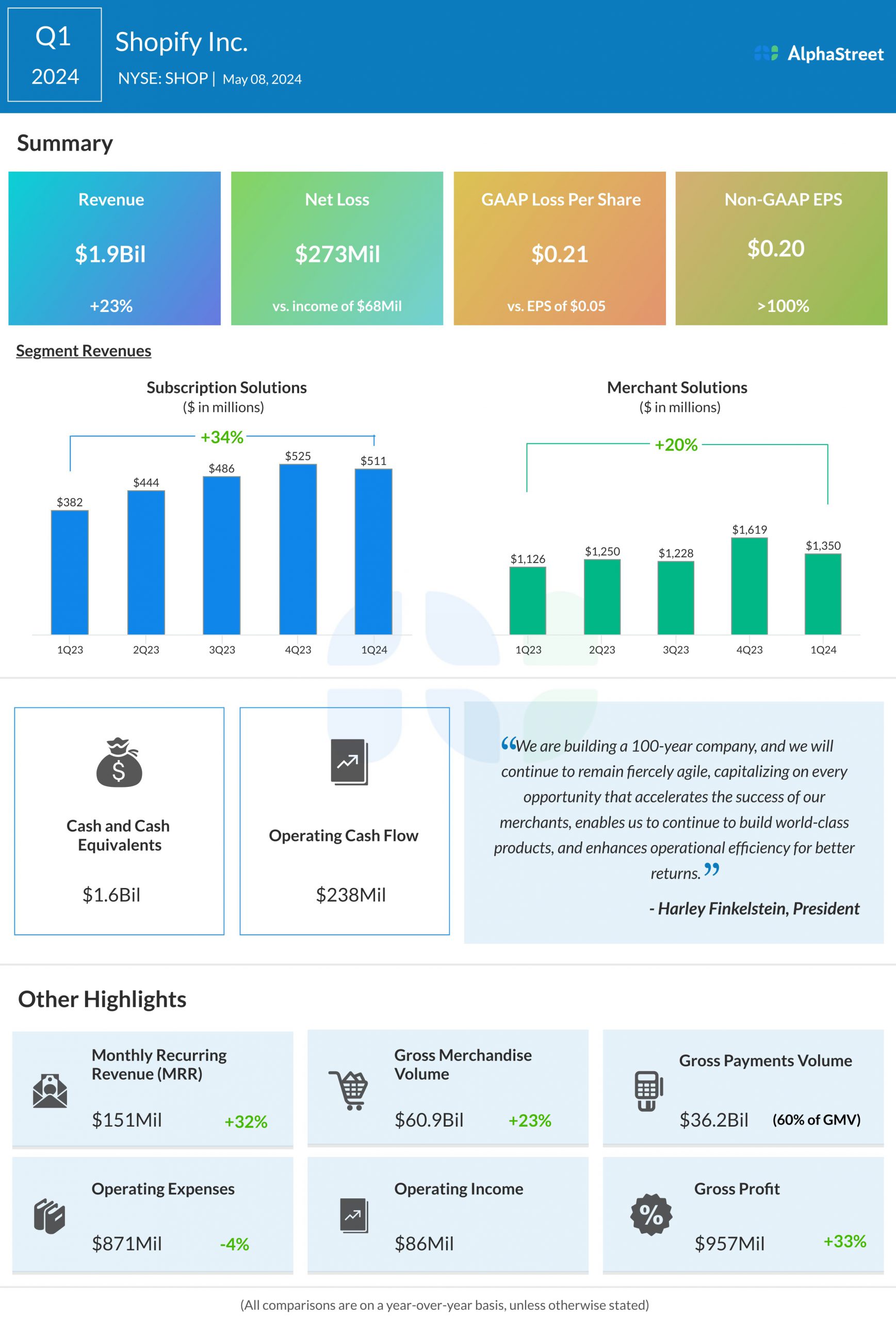 Shopify Inc. (NYSE: SHOP) reported first quarter 2024 earnings results today.