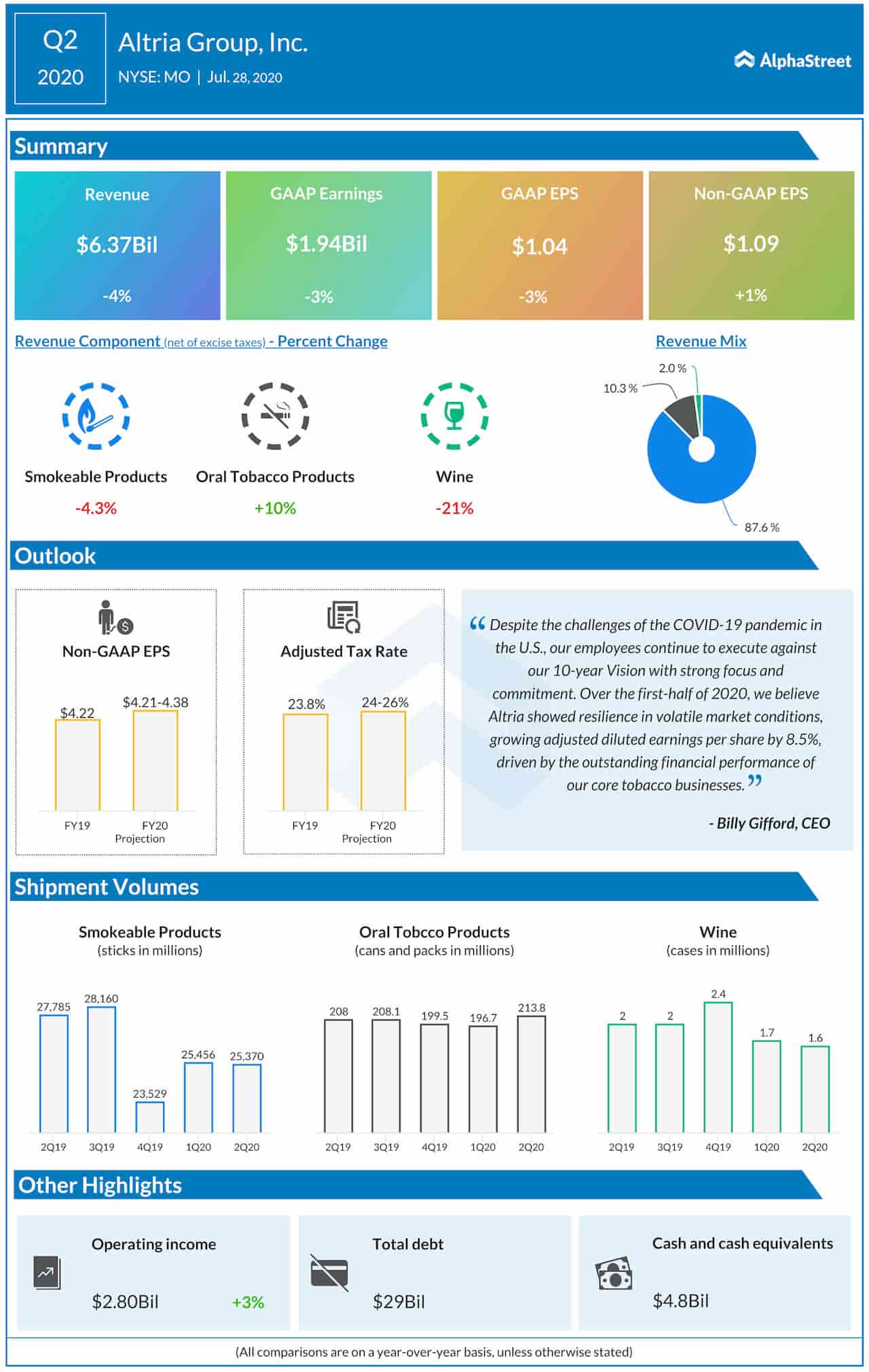 Tobacco giant Altria Group, Inc. (NYSE: MO) reported stronger-than-expected earnings and revenues for the second quarter of 2020. The company also issued earnings guidance for fiscal 2020.