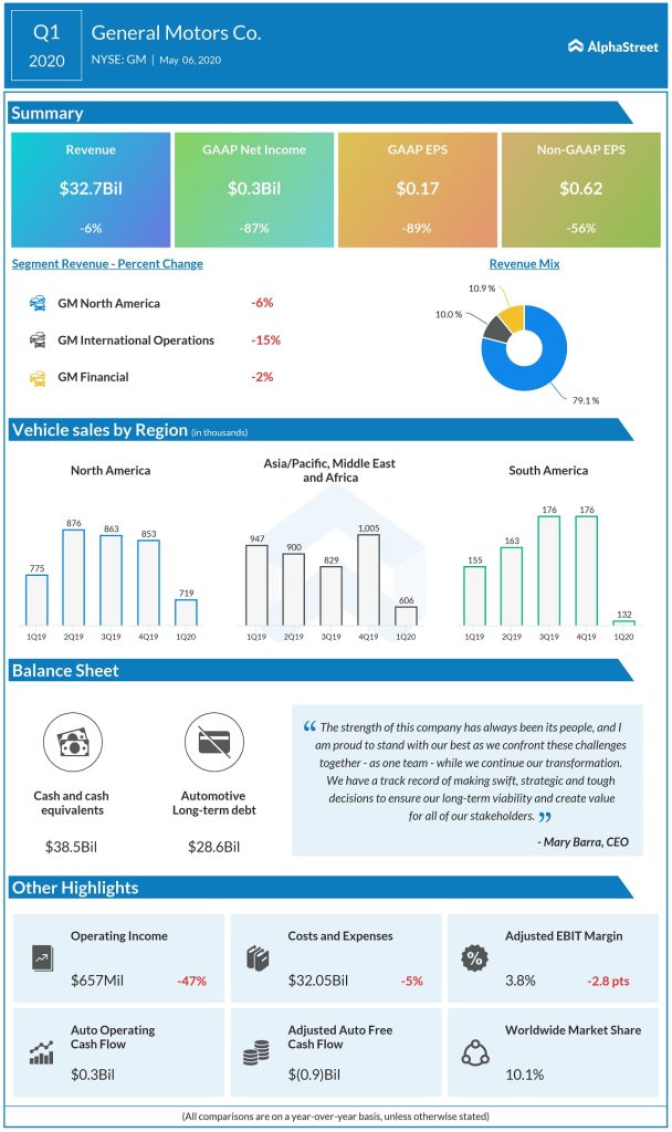 General Motors Company (NYSE: GM) today announced its first quarter financial results for the period ended March 31, 2020.