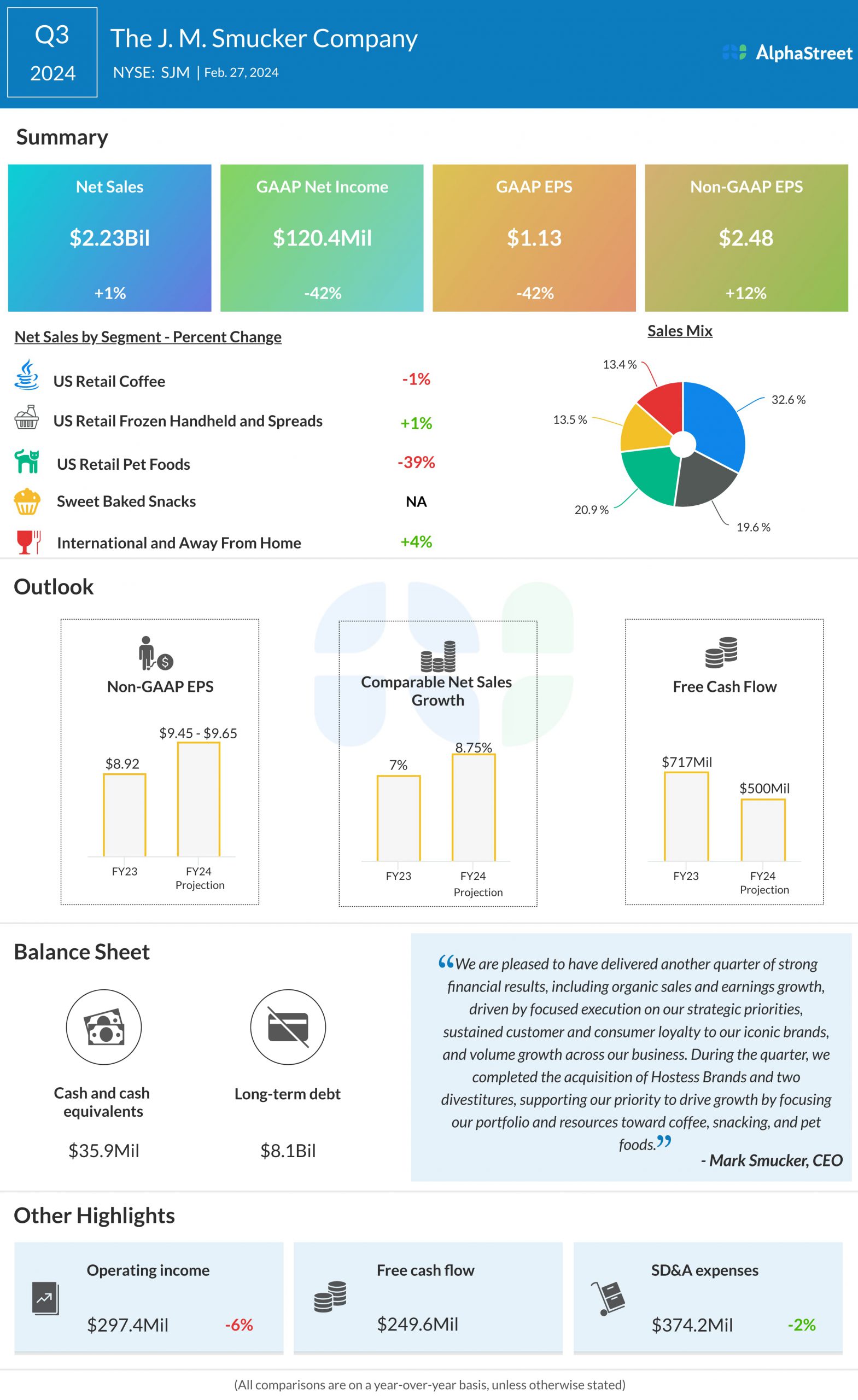 For the fourth quarter of 2024, SJM expects comparable net sales to increase a mid-single digit percentage and adjusted EPS to decline by a mid-teen percentage.