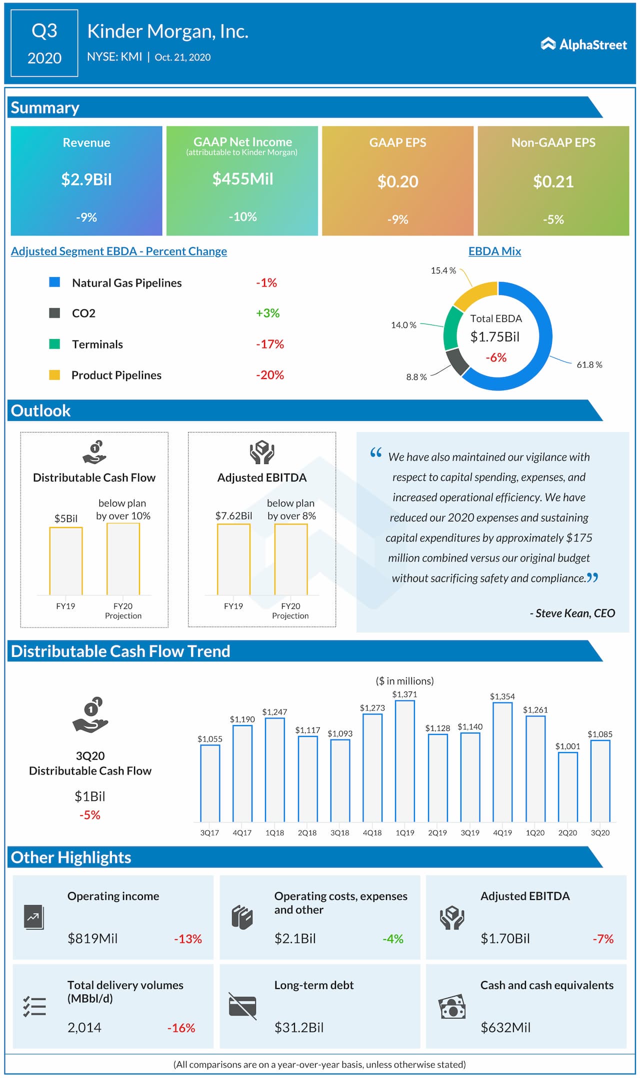 Kinder Morgan, Inc. (NYSE: KMI) reported third quarter 2020 earnings results today.