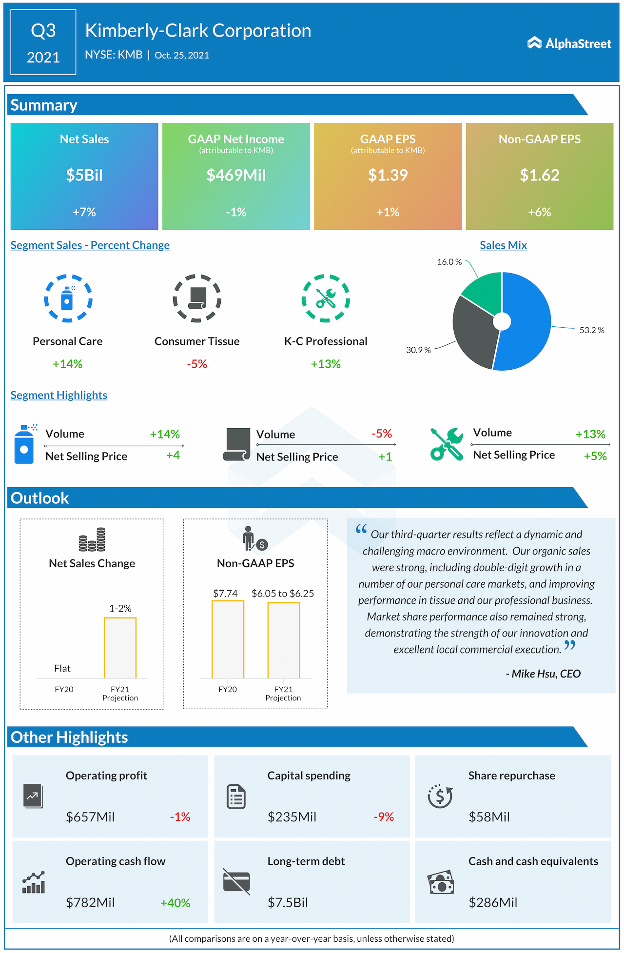 Kimberly-Clark Corp. (NYSE: KMB) Friday reported its third-quarter financial results.