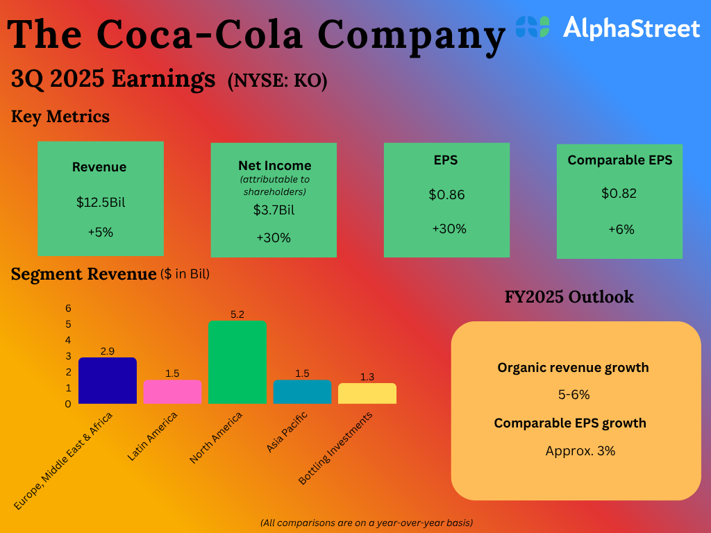 The Coca-Cola Company (NYSE: KO) reported its third quarter 2025 earnings results today. Net revenues grew 5% year-over-year to $12.5 billion. Organic revenues grew 6%. Net income attributable to shareowners of The Coca-Cola Company rose 30% to $3.69 billion, or $0.86 per share, compared to last year. Comparable EPS grew 6% to $0.82. The top […]